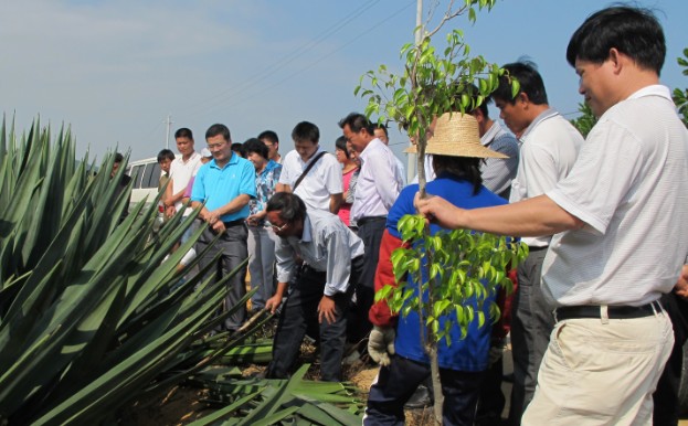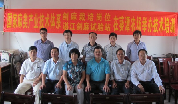 2011年10月26-28日,剑麻栽培岗位团队成员习金根副研究员、郑金龙实习研究员和湛江剑麻实验站站长黄标高工等人到广东揭阳的葵潭农场参加“国家麻类产业技术体系剑麻栽培岗、湛江剑麻实验站在葵潭农场举办技术培训”的会议,广东农垦陈叶海处长出席了会议,并作了关于“剑麻标准化生产”的讲座,黄标高工也做了“剑麻科学种植及管理知识、剑麻现代农业技术应用和剑麻主要病虫害防治”等专题讲座,并在在广东揭阳葵潭农场的剑麻田里进行科学割麻的现场培训,广东农垦陈叶海处长,葵潭农场的钟书记和林场长以及葵潭农场的多名工人参加了此次培训。
