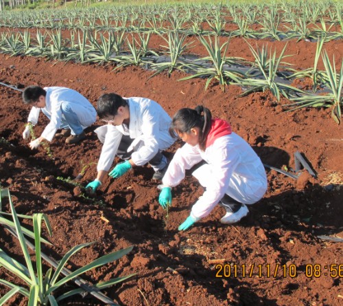 2011年11月10日,国家麻类产业技术体系剑麻栽培岗位团队成员前往湛江徐闻英利镇进行剑麻间种柱花草试验。该试验在湛江剑麻试验站的大力支持与帮助下,目前试验开展顺利。
