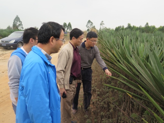 3月13日,美国夏威夷大学植物病理学胡晋生教授应邀到中国热带农业科学院环境与植物保护研究所进行学术交流。胡晋生教授在环植所易克贤研究员的陪同下,一行前往海南昌江青坎农场进行剑麻紫色卷叶病的实地考察与调研。随后,剑麻专家组成员吴伟怀博士汇报了剑麻紫色卷叶病研究进展,双方会后就该病今后的研究内容进行了深入的讨论,初步形成了2015年工作计划。